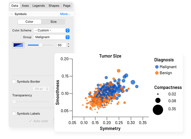 Craft stunning Bubble plots faster, easier, and more intuitively than before. Interact and customize graphs from your Multiple Variables data in real-time.