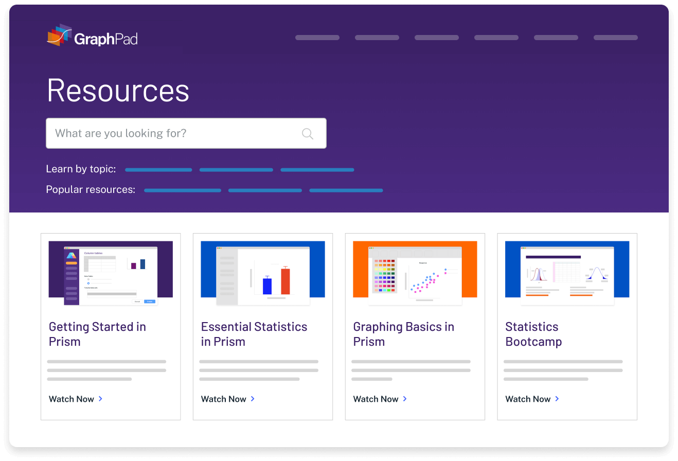 Riduci la complessità delle statistiche. La guida online di Prism supera le tue aspettative. A quasi ogni passaggio, accedi a migliaia di pagine delle Guide Utente di Prism. Impara da lezioni video, guide e materiali didattici tramite il Centro Risorse. Esplora il Portfolio Grafici e impara a creare un’ampia gamma di tipi di grafici.