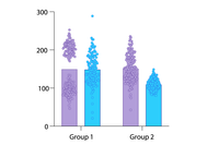 Easily create graphs that show both individual points (scatter) along with bars for mean (or median) and error bars.