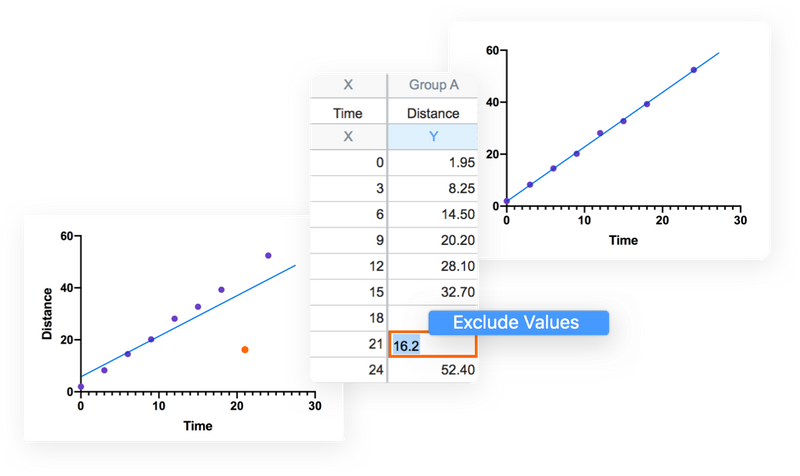- Perform nonlinear regression from Multiple Variables tables with drag-and-drop assignment of independent (X), dependent (Y), and grouping variables.