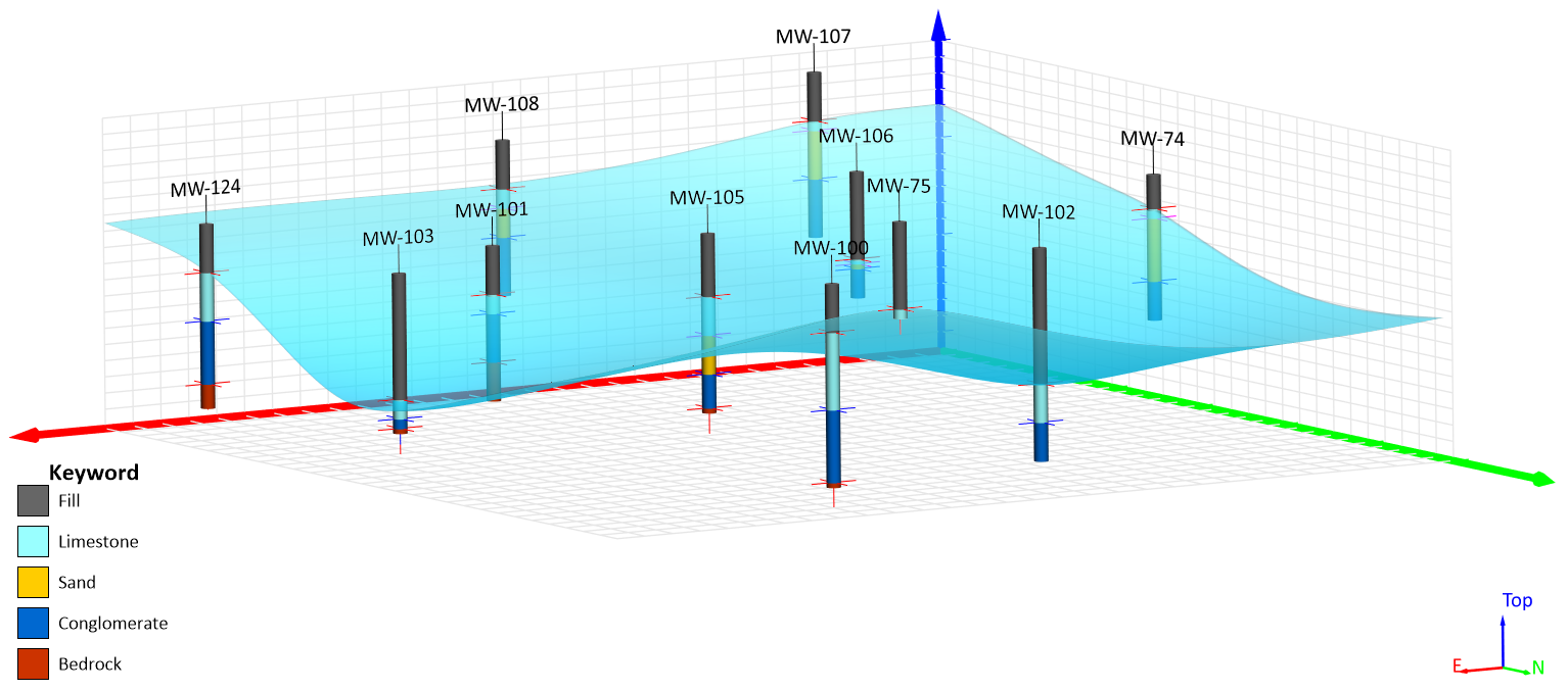 Maybe you want to see stratigraphy layers, or periods of time, or mineralization layers. You can now create contact points within your drillholes, based on either keywords (e.g. lithology names) or a query of the data (e.g. SWV or CPT data). Once you have the contact points created, you can edit them if the default location isn’t quite right – you know your data best! And once the points are finalized, export them to a data file. From there, you can grid the data and add them to your map to see the surfaces from your drillhole data! Visualizing subsurface layers is just getting easier!